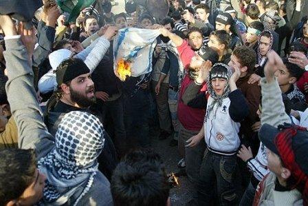 在土耳其、敘利亞和約旦多個(gè)城市,上千名民眾聚集,焚燒以色列和美國國旗。