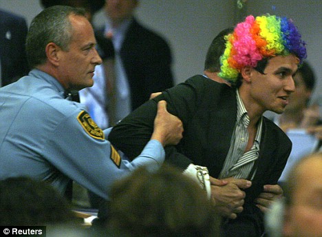 據(jù)美聯(lián)社報道,當(dāng)伊朗總統(tǒng)內(nèi)賈德20日在瑞士日內(nèi)瓦聯(lián)合國反種族主義大會發(fā)表批評以色列的言論時,數(shù)十位西方外交官中途退場,兩名化裝成小丑的示威者向內(nèi)賈德投擲假鼻子。會議從一開始就很混亂。當(dāng)內(nèi)賈德開始講演時,兩名戴著彩色假發(fā)的示威者向他扔去了小丑的紅色假鼻子。來自法國的一個猶太學(xué)生組織稱,它試圖向人們傳達(dá)“會議只不過是一場假面舞會”的信息。一名示威者大喊:“你是一個種族主義者!。”他和另一名示威者隨后被安保人員帶離現(xiàn)場。內(nèi)賈德回應(yīng)稱:“我請所有尊敬的貴賓原諒這些無知的人。他們沒有得到足夠的信息!