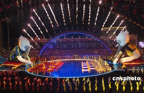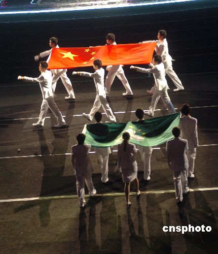 十月二十六日晚,中華人民共和國國旗和澳門特別行政區(qū)區(qū)旗升起在澳門運(yùn)動場,第二屆亞洲室內(nèi)運(yùn)動會開幕式隆重舉行。澳門特首何厚鏵、國際奧委會主席羅格等嘉賓出席開幕式。開幕式上舉行了“和諧澳門,快樂竟技”大型文體匯演。第二屆亞洲室內(nèi)運(yùn)動會將舉行十七個(gè)大項(xiàng),一百五十一個(gè)小項(xiàng)非奧運(yùn)項(xiàng)目比賽和三個(gè)示范項(xiàng)目表演,是澳門主辦的規(guī)模最大,要求最高,比賽項(xiàng)目最多的國際綜合運(yùn)動會。 中新社發(fā) 史利 攝