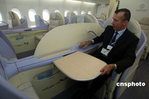 10月26日,參觀空中客車A380飛機的北京民眾被其豪華舒適的客艙所吸引。當日,一架生產(chǎn)編號為007的空中客車A380客機?吭诒本┦锥紘H機場N104機位,接待北京媒體及部分嘉賓的參觀。此次A380中國大陸之行為期一周,包括廣州、上海及北京三個城市,這是A380飛機2007年環(huán)球飛行之旅的重要部分。中新社發(fā) 楊影懿 攝