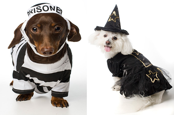 圖片八:左邊圖片中,小狗盧克正為大家進(jìn)行囚犯服裝的模特表演展示,而在右邊,瘋狂的杰克正裝扮成一個(gè)女巫,慶祝即將到來(lái)的萬(wàn)圣節(jié)之夜。(鐘巖)