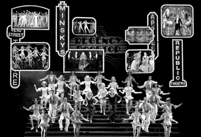 對于“百老匯”,中國觀眾已經(jīng)慕名已久,但是真正能夠看到正宗的百老匯音樂劇并不很多。以《42街》命名的音樂劇的創(chuàng)作淵源應該是來自上個世紀30年代的同名好萊塢歌舞影片,表現(xiàn)42街上的年輕人在參加百老匯音樂劇演員選拔中發(fā)生的故事,一名默默無聞的女孩在音樂劇演員選拔和演出中展露才華,因為偶然的機會而一夜成名的故事,是一部真正的揭示百老匯幕后故事的音樂劇。