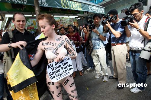 善待動物組織女郎街頭裸體抗議肉食工業(yè)(2)