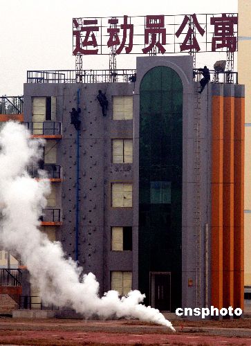 中國反恐特種部隊(duì)演練解救運(yùn)動(dòng)員人質(zhì)。