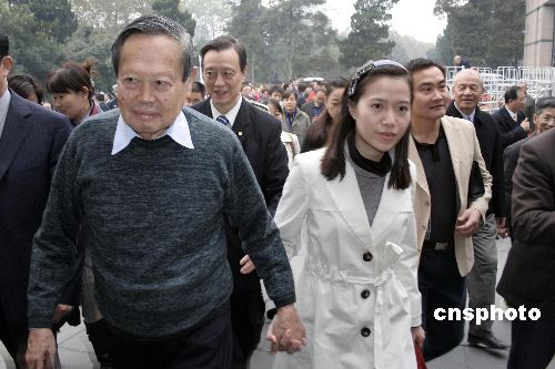 11月12日,著名物理學(xué)家、諾貝爾獎得主楊振寧攜夫人翁帆回到故鄉(xiāng)安徽合肥,準備參加首屆僑界精英安徽發(fā)展論壇大會。中新社發(fā) 張婭子 攝
