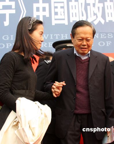 2007年11月14日,《科學(xué)巨匠、華夏赤子--楊振寧》明信片首發(fā)儀式在安徽省合肥市科技館舉行,楊振寧攜妻子翁帆出席。這套明信片共有30張照片,這些照片中不僅有楊振寧和國家領(lǐng)導(dǎo)人的合影,以及他獲得諾貝爾獎(jiǎng)時(shí)的照片,還有楊振寧與翁帆在青海踏青時(shí)的照片。中新社發(fā) 從啟 攝