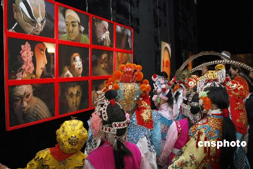 圖為學(xué)習(xí)京劇的孩子們身著戲服在攝影展上參觀。中新社發(fā) 盛佳鵬 攝