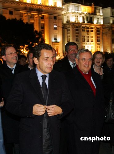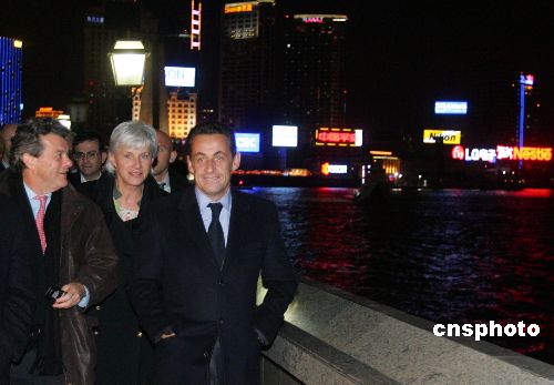 11月27日晚,正在中國訪問的法國總統(tǒng)尼古拉·薩科齊在上海饒有興致地漫步黃浦江畔,欣賞迷人夜景。中新社發(fā) 湯彥俊 攝