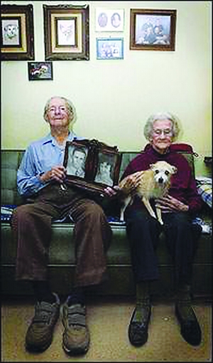 100歲的明妮·羅斯科特和99歲的梅爾文·羅斯科特夫婦是美國得克薩斯州達拉斯市人,2人從小生活在達拉斯市附近兩個鄰近的小鎮(zhèn),由于經常在學校運動會上見面,二人得以相識。經過數(shù)年戀愛后,他們終于在1927年11月11日注冊結婚。由于結婚后正巧趕上大蕭條時期,梅爾文無論哪里都找不到工作,夫妻生活異常窘困。幸好,最終他還是找到了一份卡車司機的工作,勉強維持家用。