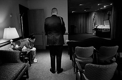 陣亡駐伊美軍的遺孀(左)悲痛莫名,同袍站在一旁。