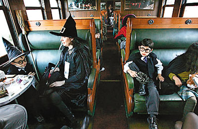 一眾小書(shū)迷在《哈利波特》大結(jié)局出版前熱切期待。