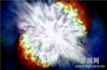 來自美國加州大學(xué)伯克利分校和德州大學(xué)的天文學(xué)家們近日宣稱,他們觀測到迄今為止最大最亮的超新星爆發(fā)。這是人類第一次觀測到一顆碩大的恒星(名為SN2006gy)死亡、轉(zhuǎn)變成超新星的過程。這顆恒星的大小是太陽的一兩百倍。在銀河系的4千億顆恒星里,這樣體積的恒星大概只有十?dāng)?shù)顆。