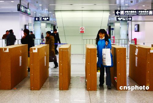 12月17日,在北京地鐵5號線天通苑站出入口處,市民正穿梭于新安裝完畢的一批電子設備中。據工作人員介紹,地鐵車站安裝的新設備是自動檢售票系統,出入口處的是閘機,其相應的配套設備還有自動售票和充值機。目前5號線全線已經陸續(xù)安裝了新的自動檢售票系統,但不會立即投入使用,還需要時間調試。屆時,北京地鐵1、2、13號線也將對原有的檢售票系統進行改造,初步預計明年3月以后,所有北京地鐵線路都要開通和使用自動檢售票系統。中新社發(fā) 鄭雄增 攝