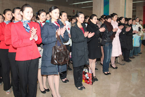 北京奧運頒獎禮儀志愿者"受審" 美女秀微笑(圖)