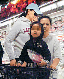 當(dāng)日大約下午5時(shí),剛買完面包的新潮媽媽琦琦背著綠色的Chanel皮袋,以一身棉外套及貼身藍(lán)牛出現(xiàn)在IFC內(nèi)的超級(jí)市場(chǎng),只見身材高大的晴佳站在由菲傭手推的購(gòu)物車上,全程用英語跟媽媽交談,還不時(shí)說出No No的聲音。然后,儼然女王一樣,指手畫腳,原來,晴佳因?yàn)橄氤耘H猓幌矚g母親放在車上的蘑菇,于是不斷說出No No來表示不喜歡。而溺愛女兒的琦琦真的順從了女兒的意思,到肉柜拿取60元一包的新鮮牛肉,還另外拿多一包給她作選擇,而目的達(dá)到的晴佳還開心得拿著牛肉久久不放。