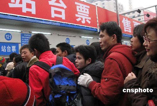 2008年1月19日周六,離春節(jié)還有十余天,大批在京就讀的大學(xué)生、打工者,在春運(yùn)高峰到來(lái)前先期買(mǎi)列車(chē)票、站臺(tái)票回家鄉(xiāng)過(guò)春節(jié)。中新社發(fā) 鄒憲 攝