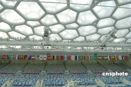 1月28日,位于北京市北四環(huán)的北京奧運(yùn)會(huì)標(biāo)志性場(chǎng)館、北京的新地標(biāo)之一——國家游泳中心(“水立方”)竣工并交付使用。經(jīng)過參建各方4年多的努力,國家游泳中心完成了奧運(yùn)建設(shè)工作,夢(mèng)幻般的水藍(lán)色建筑即將投入“好運(yùn)北京”賽事使用。國家游泳中心在國內(nèi)首次采用ETFE氣枕結(jié)構(gòu),是世界上建筑面積最大、功能要求最復(fù)雜的膜結(jié)構(gòu)系統(tǒng)。中新社發(fā) 徐曦弋 攝