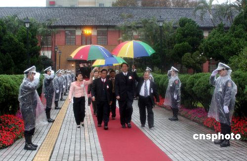 臺灣數(shù)十位腳登高筒皮靴的警官冒雨列隊在“立法院”內(nèi)紅地毯兩側(cè)迎接臺灣第七屆“立法委員”前來辦理報到并宣誓就職。