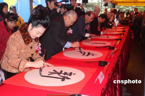圖:臺灣舉辦新年開筆大會 三千人參加書法揮毫