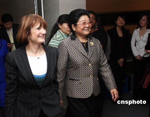 當?shù)貢r間11日晚,中國全國人大常委會副委員長、全國婦聯(lián)主席顧秀蓮在倫敦市長利文斯通的陪同下,參觀在倫敦市政廳舉辦的“中國婦女”攝影展。