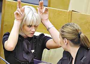 據(jù)報(bào)道,就在俄國(guó)家杜馬選舉前,普京曾向統(tǒng)一俄羅斯黨高層抱怨說(shuō),黨內(nèi)漂亮迷人的女性代表太少了,遠(yuǎn)遠(yuǎn)達(dá)不到吸引眾多投票者的程度。隨后,這一“錯(cuò)誤”很快就得到了“糾正”,5名艷光四射的美女被迅速補(bǔ)充進(jìn)來(lái),當(dāng)中包括體操奧運(yùn)冠軍霍爾金娜、冬奧會(huì)冠軍朱洛娃、藝術(shù)體操奧運(yùn)冠軍卡巴耶娃在內(nèi)的3名前奧運(yùn)會(huì)冠軍,此外還有曾擔(dān)任過(guò)保鏢的女拳擊運(yùn)動(dòng)員娜塔麗婭和莫斯科大劇院首席芭蕾舞演員查卡諾娃。