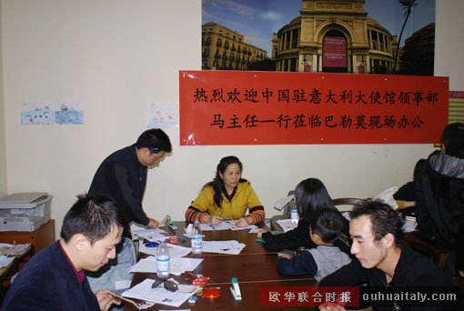 辦公現(xiàn)場設(shè)在巴勒莫華僑華人聯(lián)誼會(huì)總部內(nèi)。當(dāng)日,聯(lián)誼會(huì)門前人頭攢動(dòng),聞?dòng)嵍鴣淼纳习倜A僑華人一早就趕到了領(lǐng)事部的辦公現(xiàn)場。兩天的現(xiàn)場辦公,共辦理各類公證認(rèn)證、換照等三百余件。