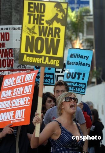 組圖:好萊塢“星光大道”上演反戰(zhàn)游行(2)