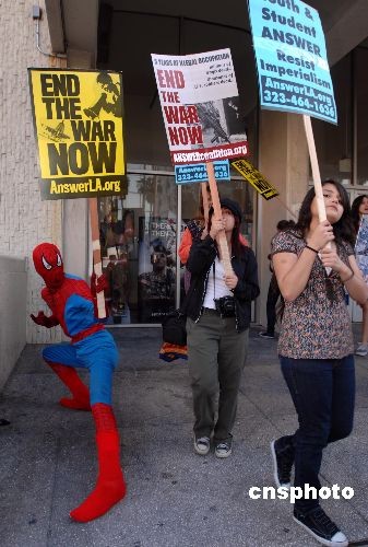 組圖:好萊塢“星光大道”上演反戰(zhàn)游行(3)