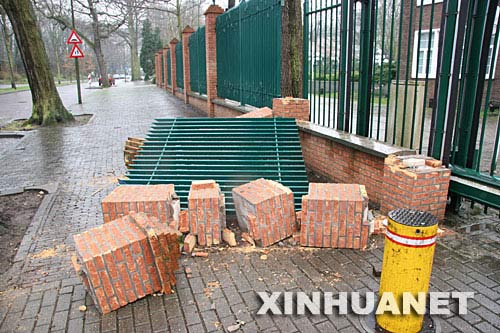 3月16日,“藏獨(dú)”分子暴力損毀中國(guó)駐荷蘭大使館圍墻欄桿和立柱。