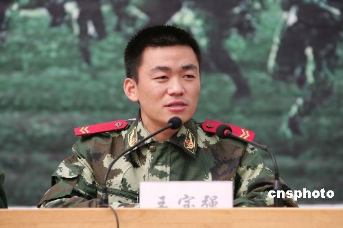 3月21日,《士兵突擊》中扮演許三多的新星王寶強(qiáng),應(yīng)邀來(lái)到武警河北總隊(duì)邢臺(tái)市支隊(duì)新訓(xùn)大隊(duì),與新兵面對(duì)面交談,共話軍旅人生。中新社發(fā) 余洪恩 攝