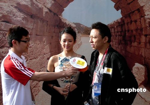組圖:章子怡身著中國韻味的絲綢禮服亮相希臘(3)