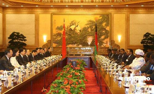 胡錦濤與馬拉維共和國總統(tǒng)會談。中新社發(fā) 盛佳鵬 攝
