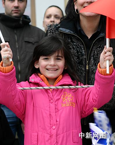 3月25日,北京2008年奧運(yùn)圣火希臘傳遞第二天,慶典儀式在終點(diǎn)約阿尼納舉行。市民高舉中國和希臘國旗歡迎北京奧運(yùn)圣火到來。中新社記者 王歡