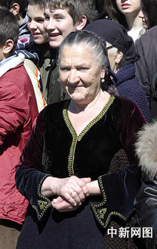 3月26日,北京奧運會圣火希臘境內傳遞第三日,抵達冰雪覆蓋的山城邁措翁。市民們身著傳統(tǒng)的民族服裝參加慶典。中新社記者 王歡