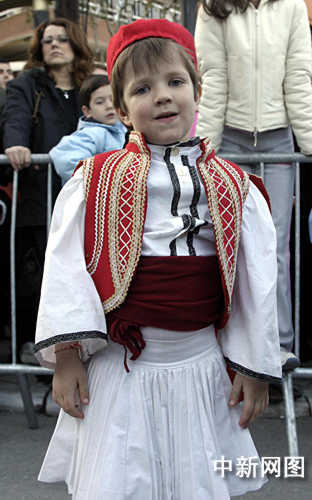 3月26日,北京奧運會圣火希臘境內(nèi)傳遞第三日,抵達當天最后一個城市韋里亞。當?shù)厥忻袷⒀b參加慶典儀式。中新社記者 王歡