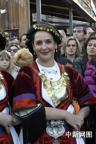 3月26日,北京奧運會圣火希臘境內(nèi)傳遞第三日,抵達當(dāng)天最后一個城市韋里亞。當(dāng)?shù)厥忻袷⒀b參加慶典儀式。中新社記者 王歡