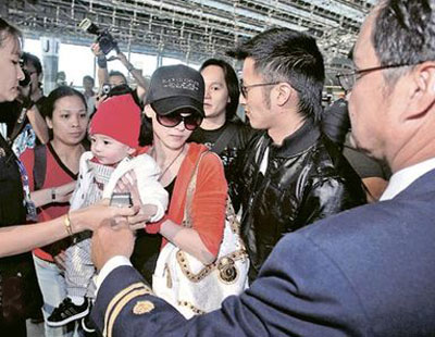 謝霆鋒護(hù)妻兒返港 與柏芝十指緊扣柔情依舊(組圖)