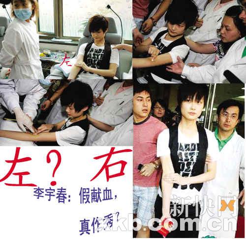 但是李宇春此次義舉卻被網(wǎng)友質(zhì)疑是一場(chǎng)做秀,有網(wǎng)友在論壇貼出圖片,“揭發(fā)”李宇春獻(xiàn)血的手忽左忽右。昨日記者致電天娛負(fù)責(zé)藝人管理的胡小姐,對(duì)方對(duì)做秀傳言表現(xiàn)得很氣憤,說(shuō):“現(xiàn)在這個(gè)時(shí)候,如果這種事都還造假,那就根本不配做藝人,甚至不配做人!