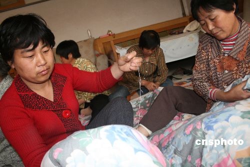 組圖:山東博興農(nóng)婦趕制被褥捐災(zāi)區(qū)(2)