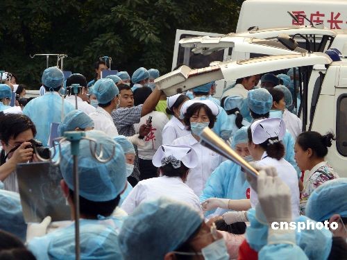 5月19日下午五點半多,四川汶川地震災(zāi)區(qū)的一批重傷員抵達(dá)重慶,重醫(yī)附一院的醫(yī)生護(hù)士象解放軍野戰(zhàn)醫(yī)院搶救傷員一樣投入搶救,猶如前方的戰(zhàn)場。