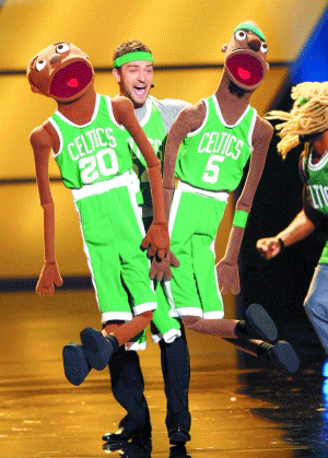 耍球星 賈斯汀拿凱爾特人隊(duì)球星開涮。