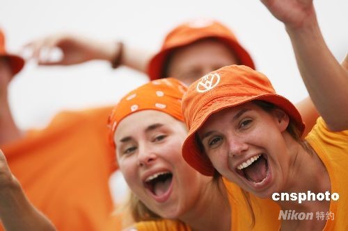 圖為激情荷蘭球迷現(xiàn)場助威。中新社發(fā) 武仲林 攝