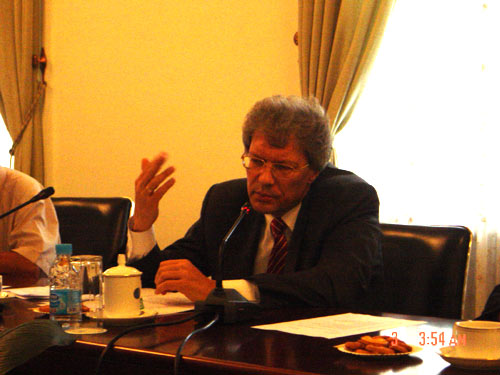 3日下午,俄羅斯駐華大使謝爾蓋·拉佐夫應(yīng)中國國際問題研究基金會之邀,圍繞誰是格俄沖突發(fā)動者和受害者、沖突的由來、沖突的國際背景、俄承認(rèn)南奧塞梯和阿布哈茲獨(dú)立的法理依據(jù)、國際社會反應(yīng)、沖突前景等七大問題在基金會發(fā)表演講。中國國際問題研究基金會理事長、上海合作組織首任秘書長、外交部前副部長、前駐俄大使張德廣主持演講會。