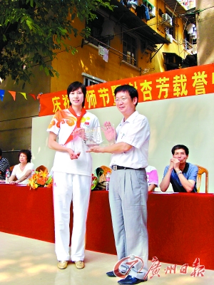 說(shuō)起當(dāng)年自己的調(diào)皮事,謝杏芳笑了,“趁著教師節(jié)回來(lái),正好給母校的恩師們送上祝福,祝愿他們節(jié)日快樂(lè),工作順利,為祖國(guó)為廣州培養(yǎng)更多的人才!敝x杏芳的父母也被邀請(qǐng)來(lái)到現(xiàn)場(chǎng),濱江中一小的不少退休老教師特地回到學(xué)?纯催@位世界冠軍,他們紛紛拉著謝杏芳的手:“阿芳,你還記得我嗎?”