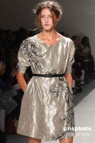 圖為世界名模參加中國女裝設(shè)計(jì)師羅崢作品展示。中新社發(fā) 錢興強(qiáng) 攝