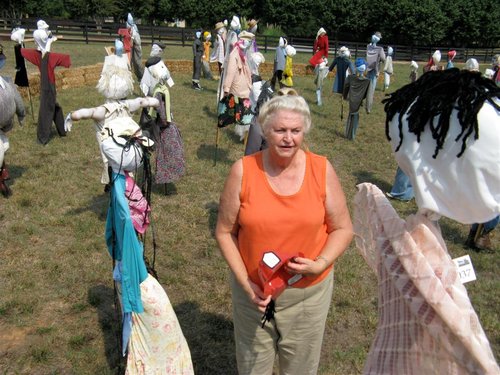 游客和稻草人合影。