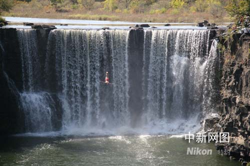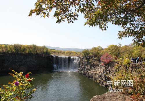 吊水樓瀑布,古時土著人名曰"發(fā)庫",位于湖之北端,距"鏡泊山莊"僅三公里。吊水樓瀑布酷似聞名世界的"尼亞加拉大瀑布"。湖水在熔巖床面翻滾、泡哮,如千軍萬馬之勢向深潭沖來,然后從斷巖峭壁之上飛瀉直下,撲進圓型甌穴之中。潭水浪花四濺,如浮云堆雪,白霧彌漫;又似銀河倒瀉,白練懸空。水聲震耳如有雷鳴。瀑布一般幅寬四十余米落差為十二米。雨季或汛期,瀑布呈現(xiàn)兩股或數(shù)股迭落,總幅寬達二百余米。