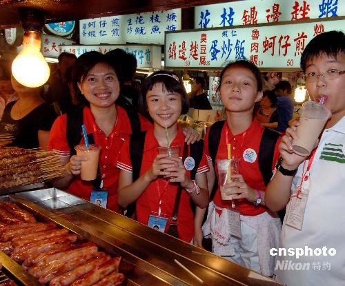 福建小營員夜游臺北“士林夜市”,品嘗當?shù)靥厣〕浴V行律绨l(fā) 劉可耕 攝