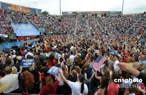 佩林此行目的除了演講造勢(shì),還將參加籌款會(huì)為麥凱恩陣營(yíng)募款。中新社發(fā) 張煒 攝