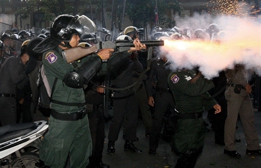 10月7日,泰國(guó)持續(xù)6個(gè)星期的政治危機(jī)不但沒有因新總理頌猜上臺(tái)而紓緩,反而變本加厲。泰國(guó)警方7日早晨在曼谷采取行動(dòng),投擲催淚彈強(qiáng)制驅(qū)散包圍國(guó)會(huì)大院的反政府示威者。泰國(guó)警察和醫(yī)療官員稱,混亂已造成85人受傷,其中9人重傷。